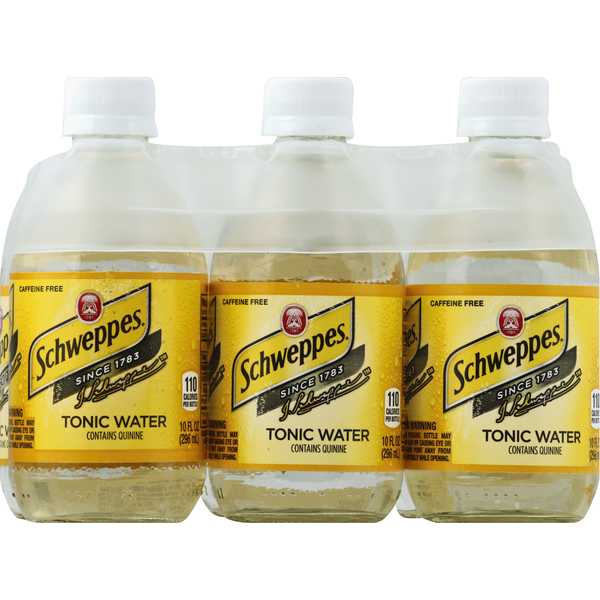 • Caffeine Free 6 PACK Schweppes Tonic Water Add to favorites $6.58 ($1.10/ EACH (10 OZ)) In Stock Warning: Read the description Add To Cart You agree to the Terms Of PurchaseYou need Javascript to use the previous link or use Terms Of Purchase Description Details: Caffeine free. Contains quinine. Ingredients: CARBONATED WATER, HIGH FRUCTOSE CORN SYRUP, CITRIC ACID, SODIUM BENZOATE (PRESERVATIVE), QUININE, NATURAL FLAVORS Substitute Infomation Delivery Delivery service is available within Cape Coral, FL. Zip codes: 33903, 33904, 33909, 33910, 33914, 33915, 33990, 33991, 33993 are currently available. Free delivery with orders of $35.00 or more. Delivery orders are available 8:00 am to 7:00 pm, 7 days a week. Hourly slots availability is limited. Same day delivery is available within 3 hours of placing your order. Product DisclaimerYou need Javascript to use the previous link or use Product Disclaimer Have A Question About Schweppes Tonic Water Ask Now Stock #: 216827