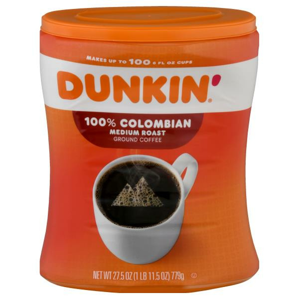 Details: 100% premium Arabica coffee. Makes up to 100 6 fl cups. It's a success story that started in 1950 as a single donut shop in Quincy, Massachusetts, and now includes over 500 shops. Sure, Dunkin' has been known for its donuts over the years, but it's our coffee that's kept America running. And just what kind of brew could create such a stir? Open this canister and find out. 100% Colombian Coffee. Full-bodied flavor for pure satisfaction. Brew yourself a cup and enjoy the great taste of Dunkin' at home. dunkinathome.com. how2recycle.info. Visit dunkinathome.com for more information. For comments or questions, please call 1-800-374-5308. Love this coffee? Try our other delicious varieties.