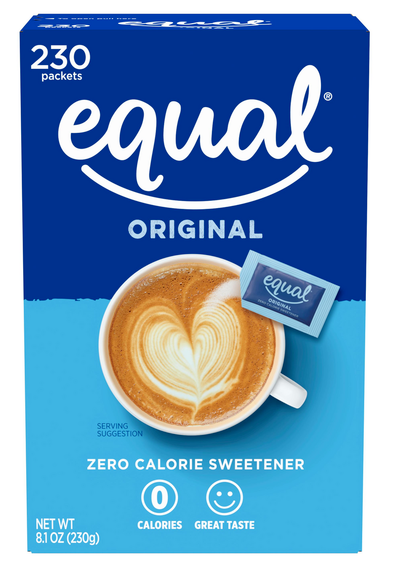 • Equal sweetener: each packet of this sugar substitute has the same sweetness as two teaspoons of sugar