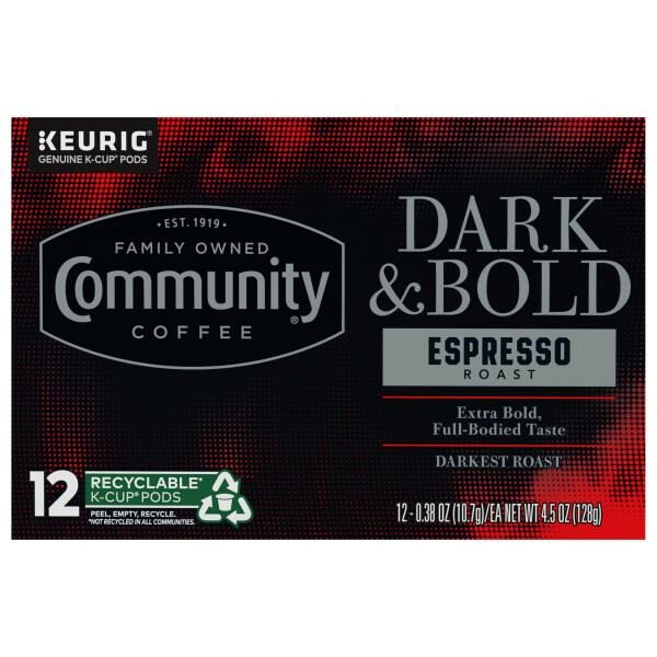 Community Coffee Dark & Bold Espresso Roast Coffee Pods for Keurig K-cups