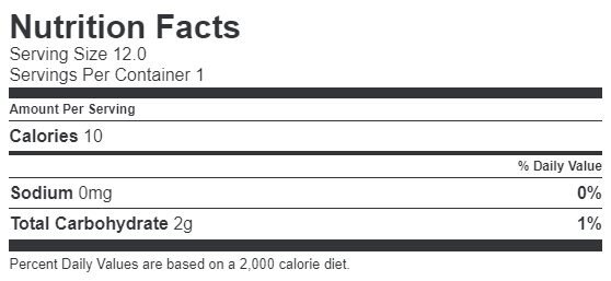 Ingredients: Filtered Water, Citric Acid, Natural Flavor, Fruit And Vegetable Juice For Color, Sucralose.