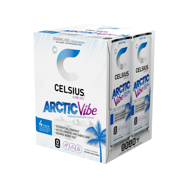 Details: Cool off your summer with a chill vibe of palm trees and cool breeze. CELSIUS Arctic Vibe packs an icy chill of refreshing Frozen Berry flavor that will keep you cool and energized all summer long. Made with clinically proven ingredients, this carbonated flavor of CELSIUS has the perfect balance of flavor and energy that serves as an awesome pick-me-up for active lifestyles.