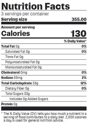 Ingredients: CARBONATED WATER, HIGH FRUCTOSE CORN SYRUP, CITRIC ACID, SODIUM BENZOATE (PRESERVATIVE), QUININE, NATURAL FLAVORS