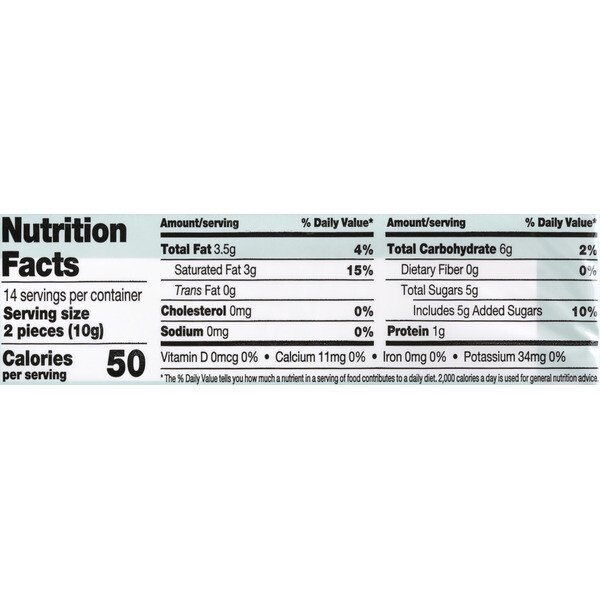 Ingredients: SUGAR, PALM KERNEL AND PALM OIL, COCOA (PROCESSED WITH ALKALI), NONFAT MILK, LACTOSE, MILK PROTEIN CONCENTRATE, SOY LECITHIN (AN EMULSIFIER), NATURAL AND ARTIFICIAL FLAVORS, PEPPERMINT OIL, COLORS ADDED (YELLOW 5 LAKE, BLUE 1 LAKE).