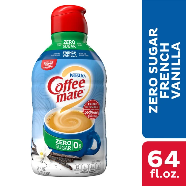 This sugar free Coffee mate French Vanilla flavored creamer is a lactose free, gluten free, cholesterol free and non dairy coffee creamer