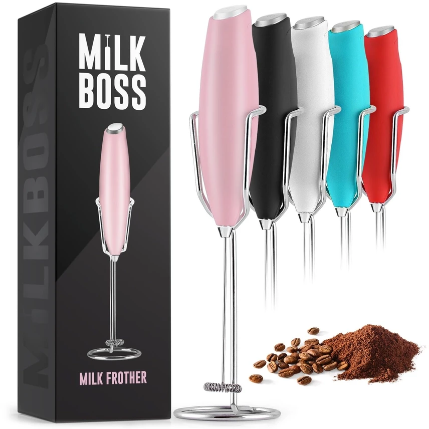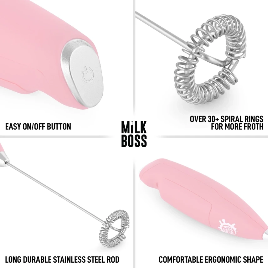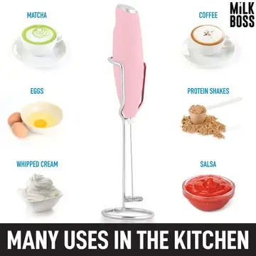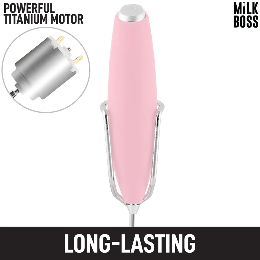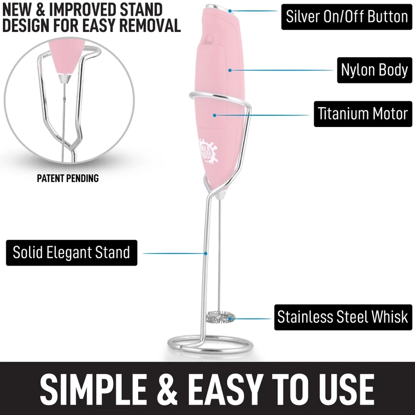 Zulay Kitchen Handheld Milk Frother with Holster Stand-Milk Boss Pink Only