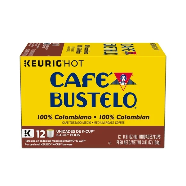 Details: Treat yourself to the invigorating, unmistakable flavor and aroma of Colombian coffee with Caf Bustelo 100% Colombian K-Cup Pods. Made with 100 percent Colombian coffee, this medium roast offers a captivating aroma and bright, playful flavor notes. The coffee stands up to milk and sugar exceptionally well and retains its rich flavor even after mixing, making it ideal for making cortaditos and other coffee drinks. It comes packaged in convenient K-Cup pods that make brewing fast and effortless.